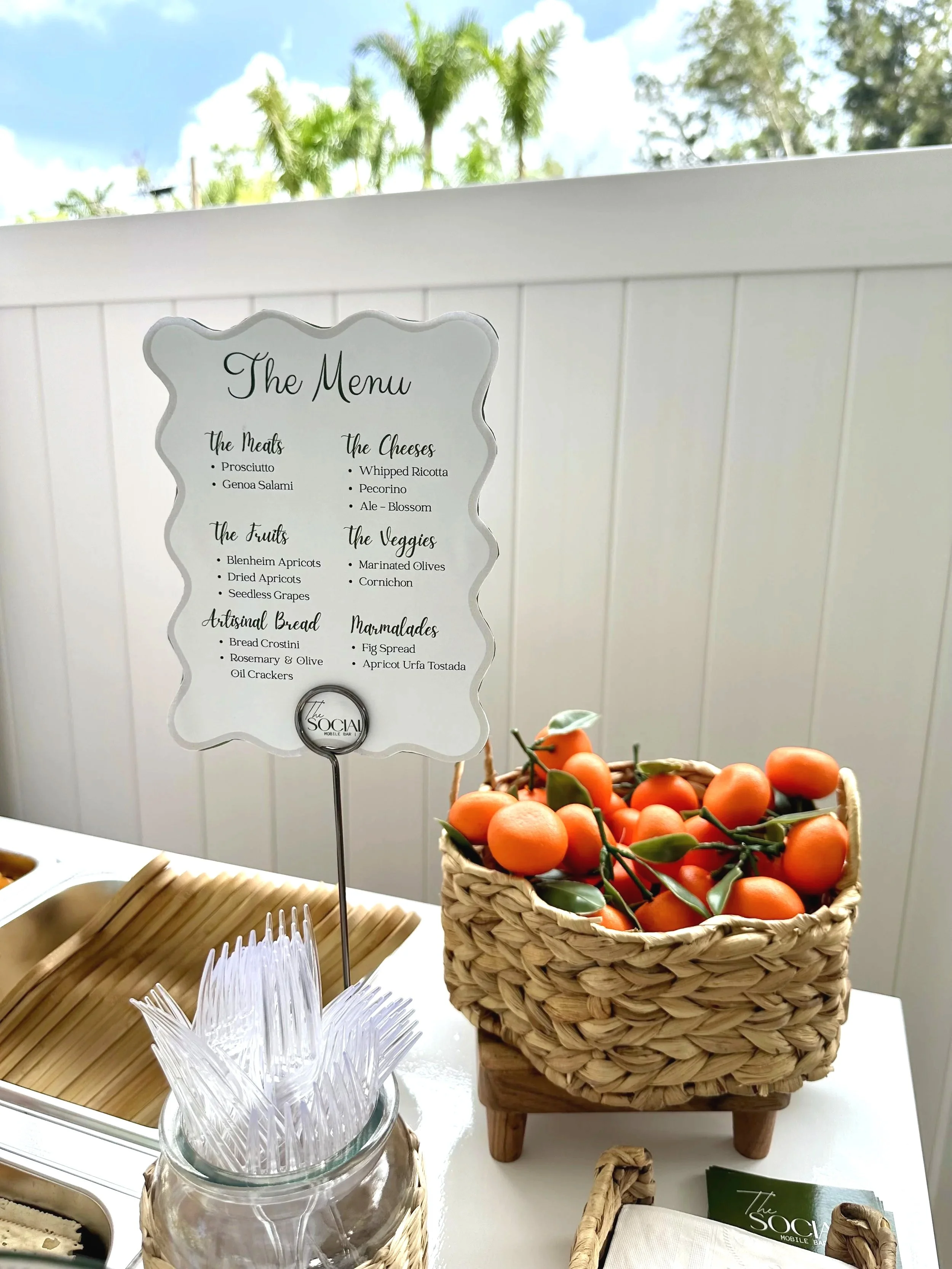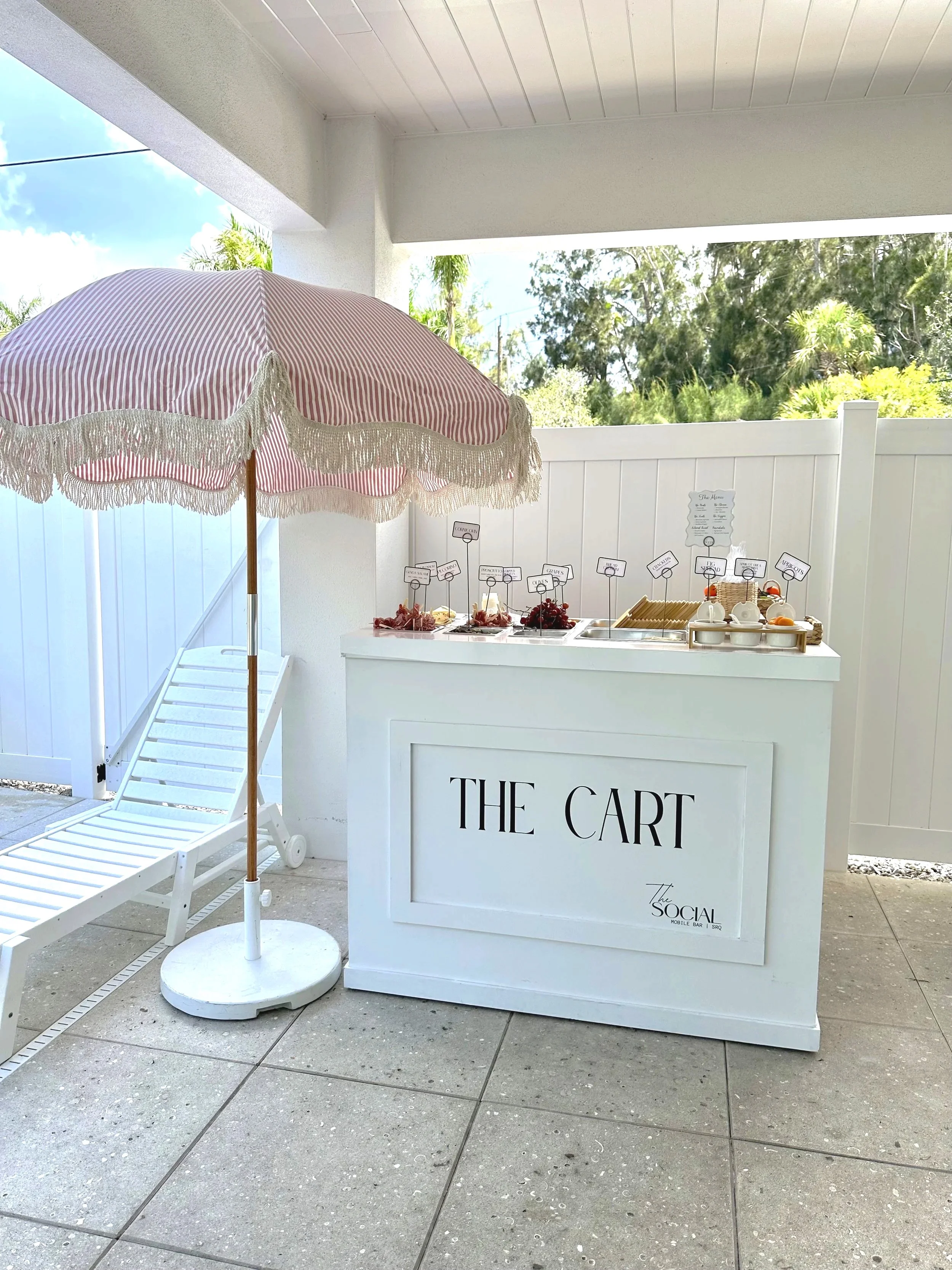 Please Note: The pricing covers your selected food items, a cart rental for two hours, or more for larger parties, setup and breakdown, travel time within Sarasota and nearby areas, mini charcuterie boards, and a dedicated staff member to assist with serving and replenishing items throughout the event.